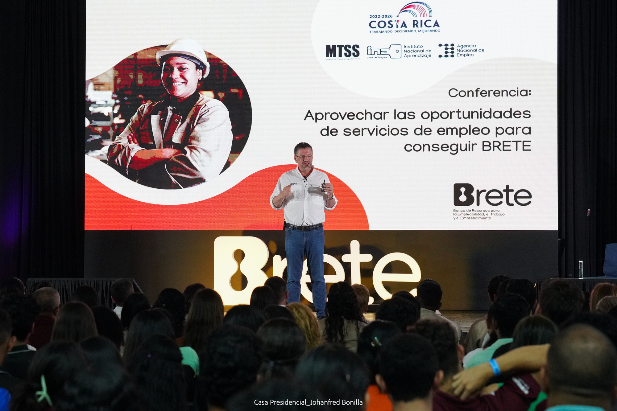 El presidente de la República, Rodrigo Chaves, señaló que “con la Declaratoria de Interés Público de la estrategia Brete, está reafirmando la responsabilidad y el compromiso con la articulación multisectorial desde el Sistema Nacional de Empleo, el cual es nuestra plataforma para gestar alianzas que se traduzcan en oportunidades para las personas y para las empresas”.